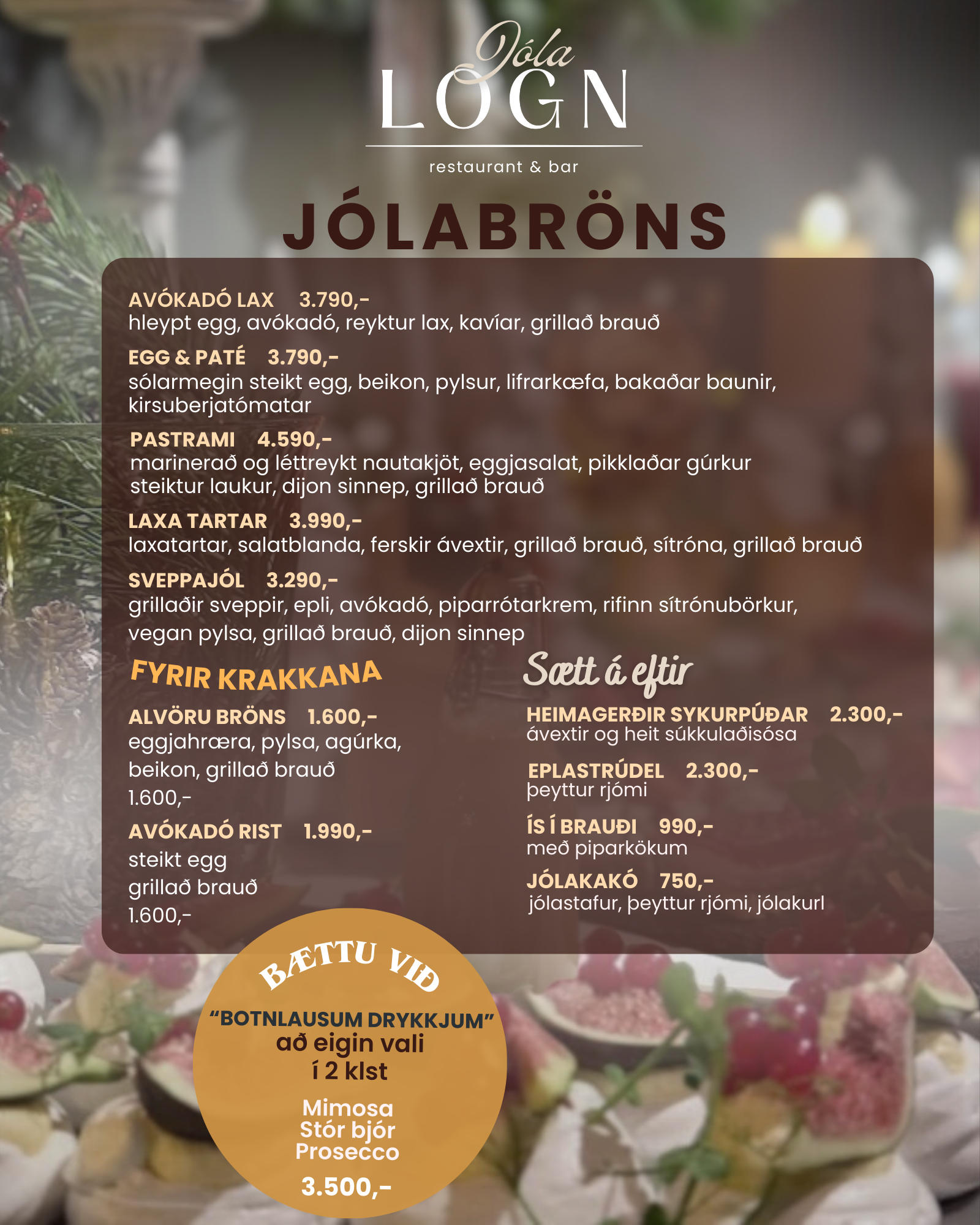 Hægt er að panta borð og fá upplýsingarum hópamatseðilinn okkar á lobby(hjá)hotelisafjordur.is eða í síma 456 3360.