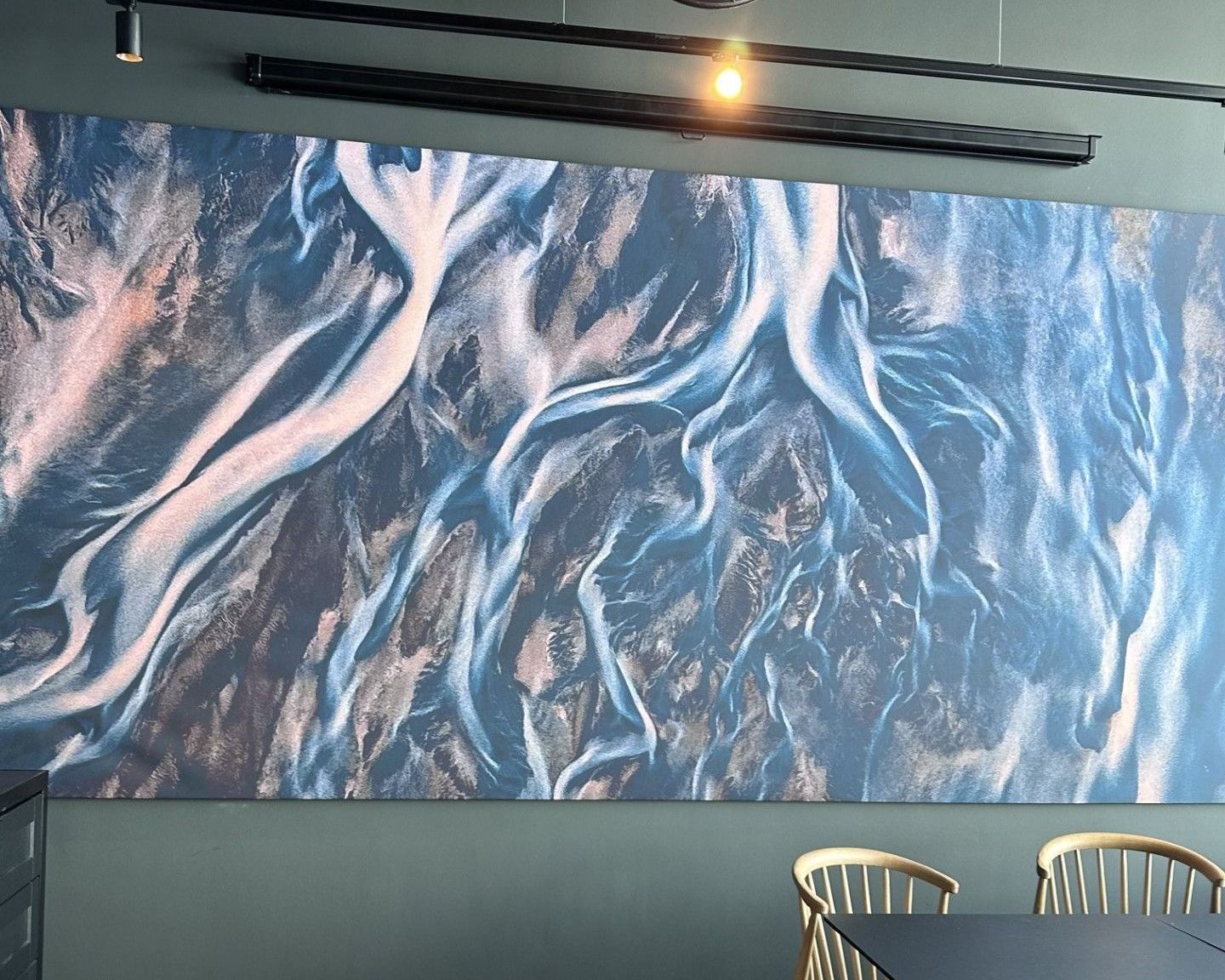 Kaldalón lies on the Snæfjallaströnd coast, on the north side of Ísafjörður. The area is really a deep valley formed by the melting of Lónsjökull, one of the glacial spurs of Drangajökull. From the glacier to the sea runs the glacial river Mórilla with its intricate, vascular-like system of braided channels where three different water sources join: Glacial meltwater from Drangajökull; springwater from Votubjörg, Trymbilsstaðarhlíð, Háafellshjallar and Lónseyrarhlíð that frame the valley; and streams from brightly coloured silt ponds that dot the fertile slopes.