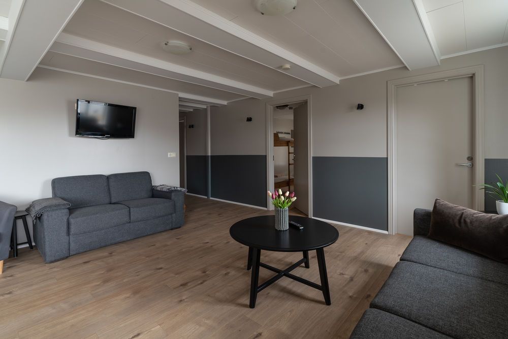 Eldunaraðstaða er í eldhúsi og í stofunni er sófi og sjónvarp. Baðherbergin eru tvö og bæði með sturtu, þau eru sameiginleg.