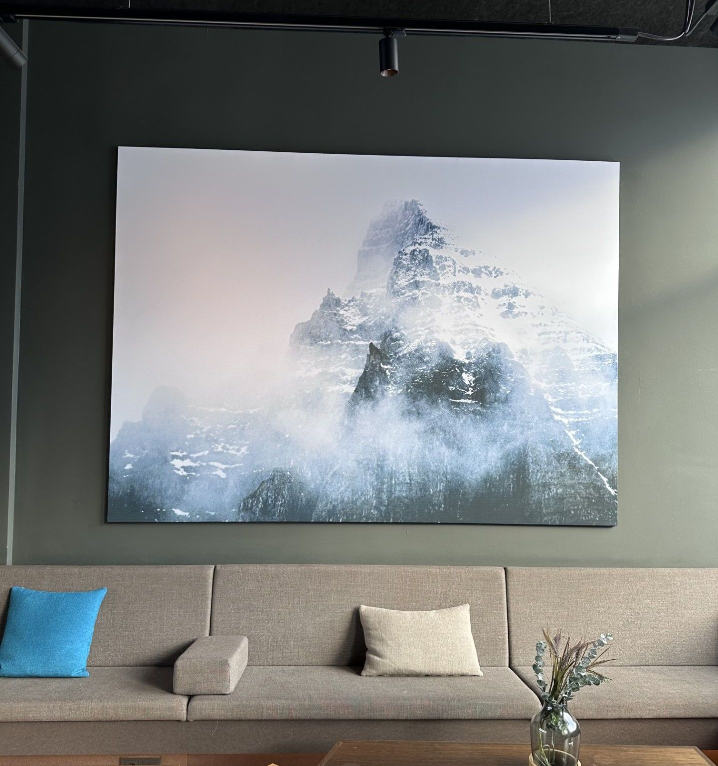 Hún er líka táknræn fyrir mikilfengleika vestfirskra fjalla og minnir okkur á að ferðast gætilega um þau. Veðrið er dramatískt, tindurinn umvafinn skýjum og um tröllkennda drangana leikur dulúðleg þoka. Með árunum hefur einmitt kaldranaleg náttúran aukið skilning okkar á fegurð Vestfjarða, eiginleikum þeirra og möguleikum.